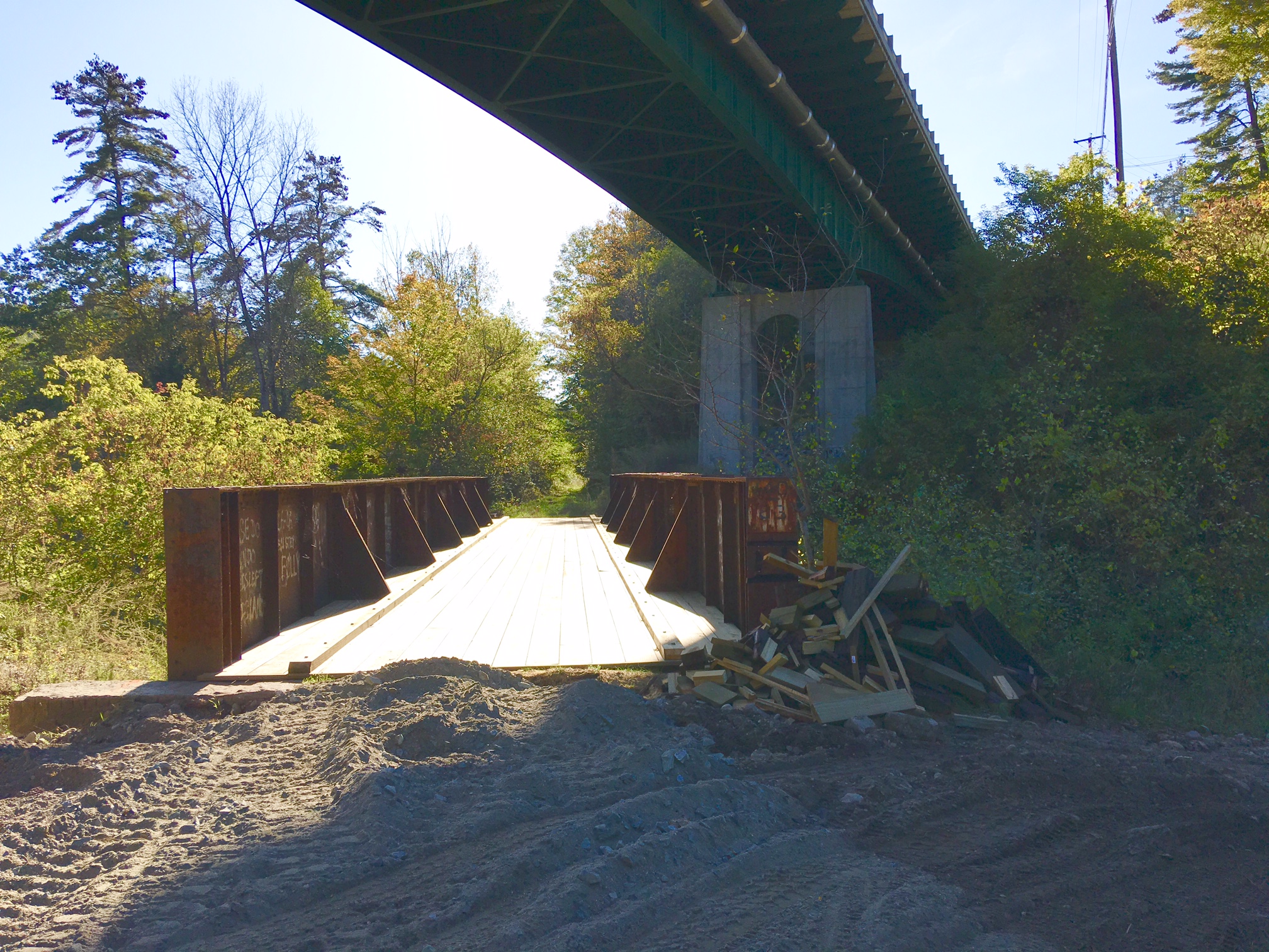 Bridge over Mascoma River with Terri Dudley Bridge (RT 4) overhead