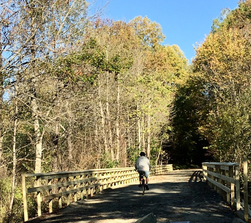 Biker heading back eastward.