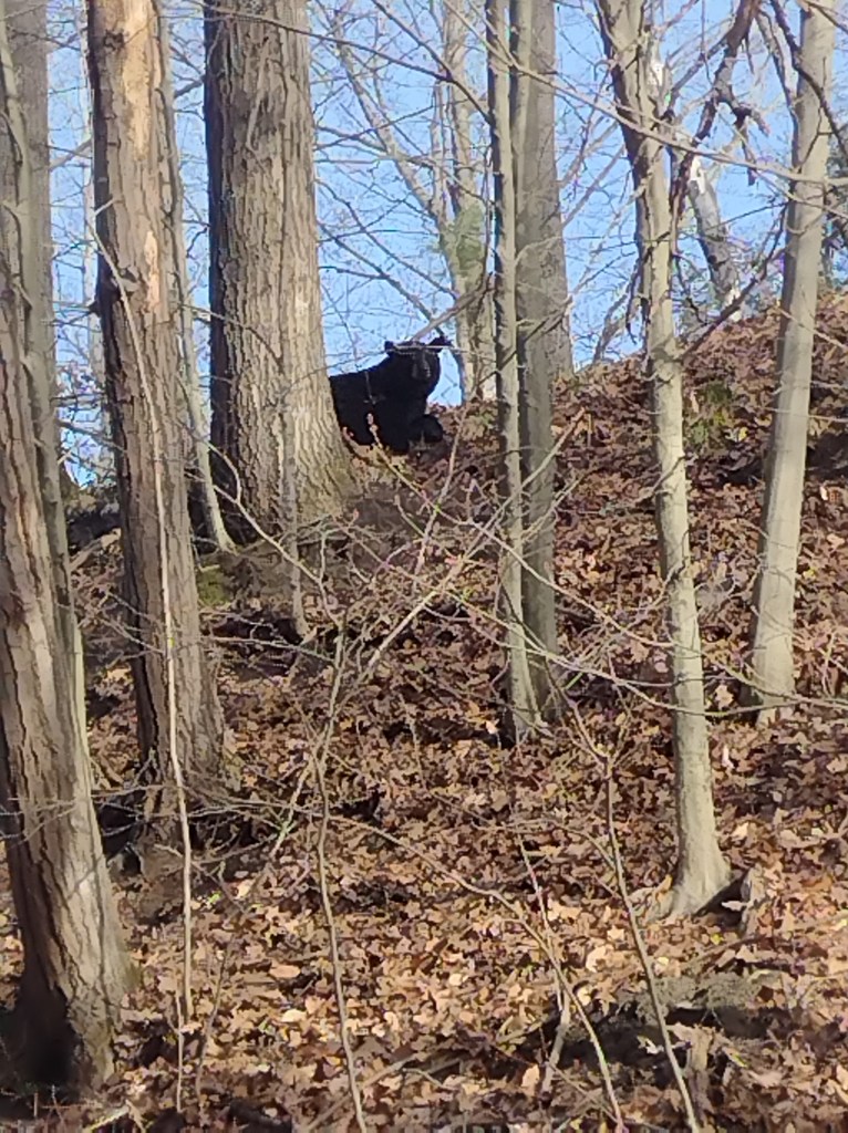 “After I turned around at Glen Rd and headed back to Lebanon, this guy was sitting on hill just off MRG behind Renihan Meadows at 8:15 this morning. It could have been same bear I had seen earlier but the first bear had run off down the trail behind Renihan towards the river. Same or different bears, these were good photo ops.”