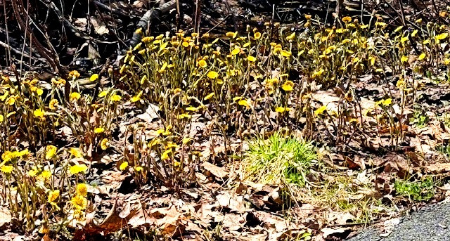 Lots of coltsfoot in bloom along the MRG