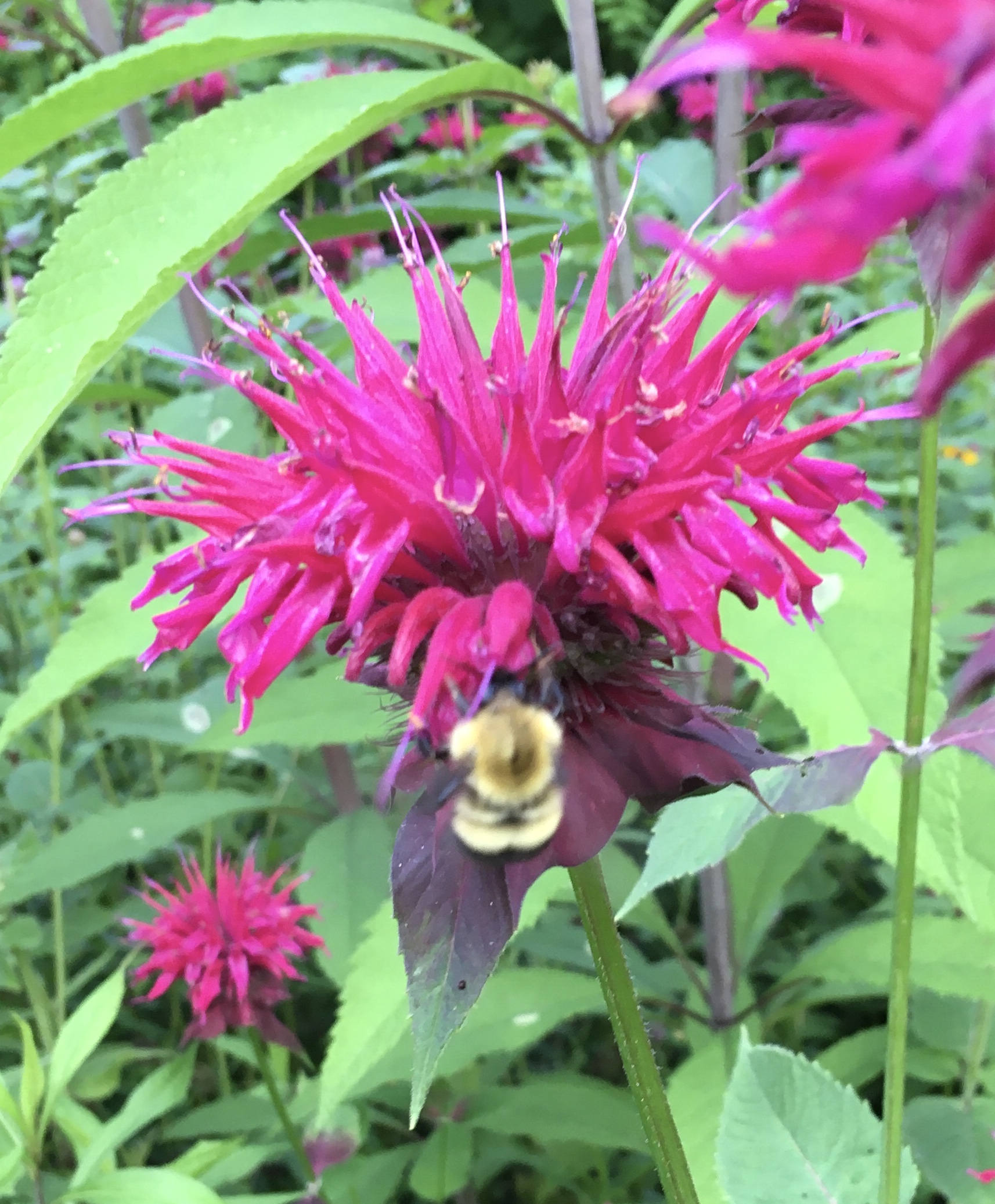 * Pollinator garden at the MRG access at the intersection of Mascoma/Mechanic/High streets (Here we are collaborating with nature: common milkweed, Queen Anne’s lace, clover, and goldenrod were already in place.)